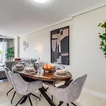 Disfruta de tus vacaciones en Estepona en el Luxury Apartment Sunset Golf With Spacious Private Garden & Seaview Estepona. Ideal para quienes buscan una experiencia auténtica, está situado a unos 10 minutos en coche del Atalaya Golf and Country Club y a una distancia de 2 km de la Playa de Guadalmansa. El apartamento de 100 m², que ofrece una terraza, también cuenta con unas piscinas exteriores para que los huéspedes se puedan relajar.